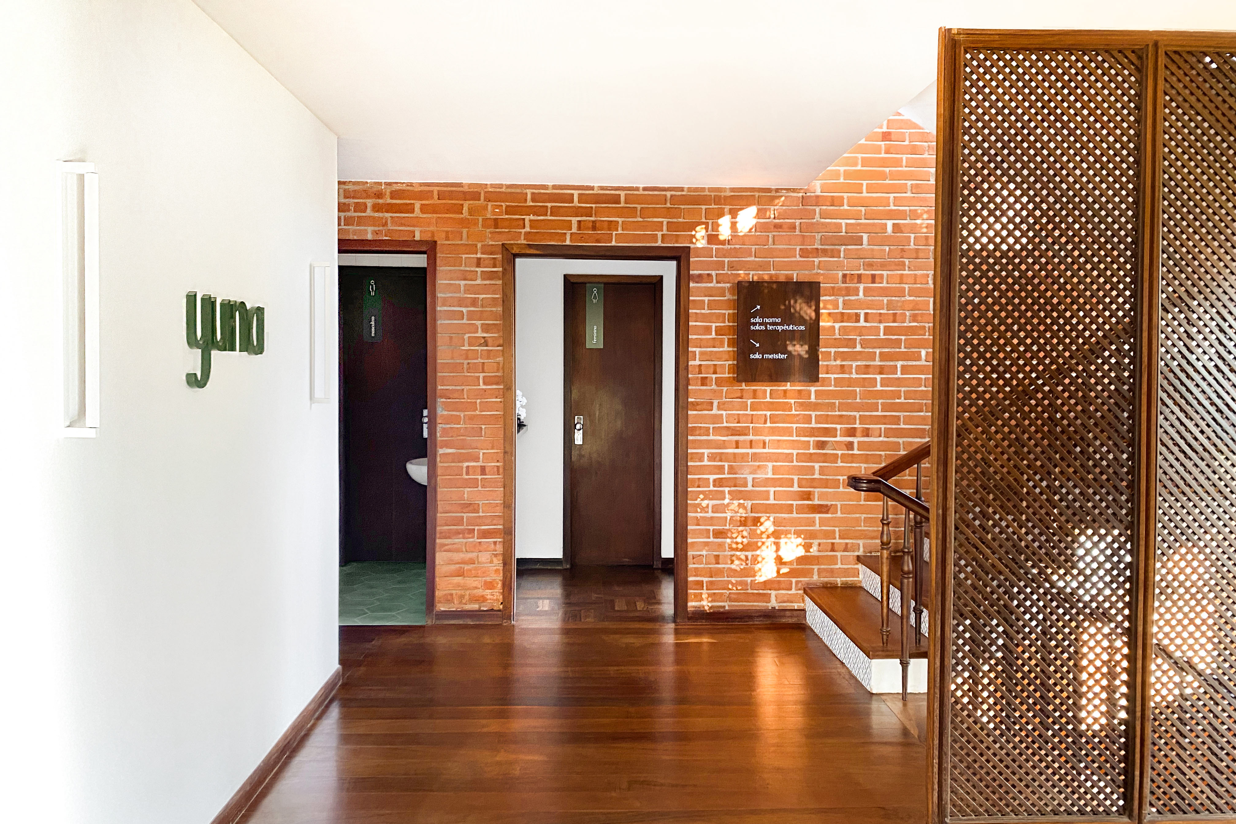This project encompassed both the visual identity and the architectural renovation of a yoga school housed in a historic residence originally designed by renowned Brazilian architect Rubens Meister.